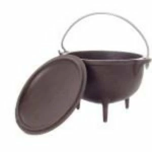 The Cajun Classic camp pot is made of cast iron and features a curved lid. This Cajun Classic camp pot measures 5 3/4 inches tall including legs and the interior of camp pot measures 3 1/2 inches tall x 4 1/2 inches wide. Cast iron cookware makes for superior heat retention and even heating of foods. Heavy-Duty and durable, designed to last for years. Hand wash with stiff brush and hot water.