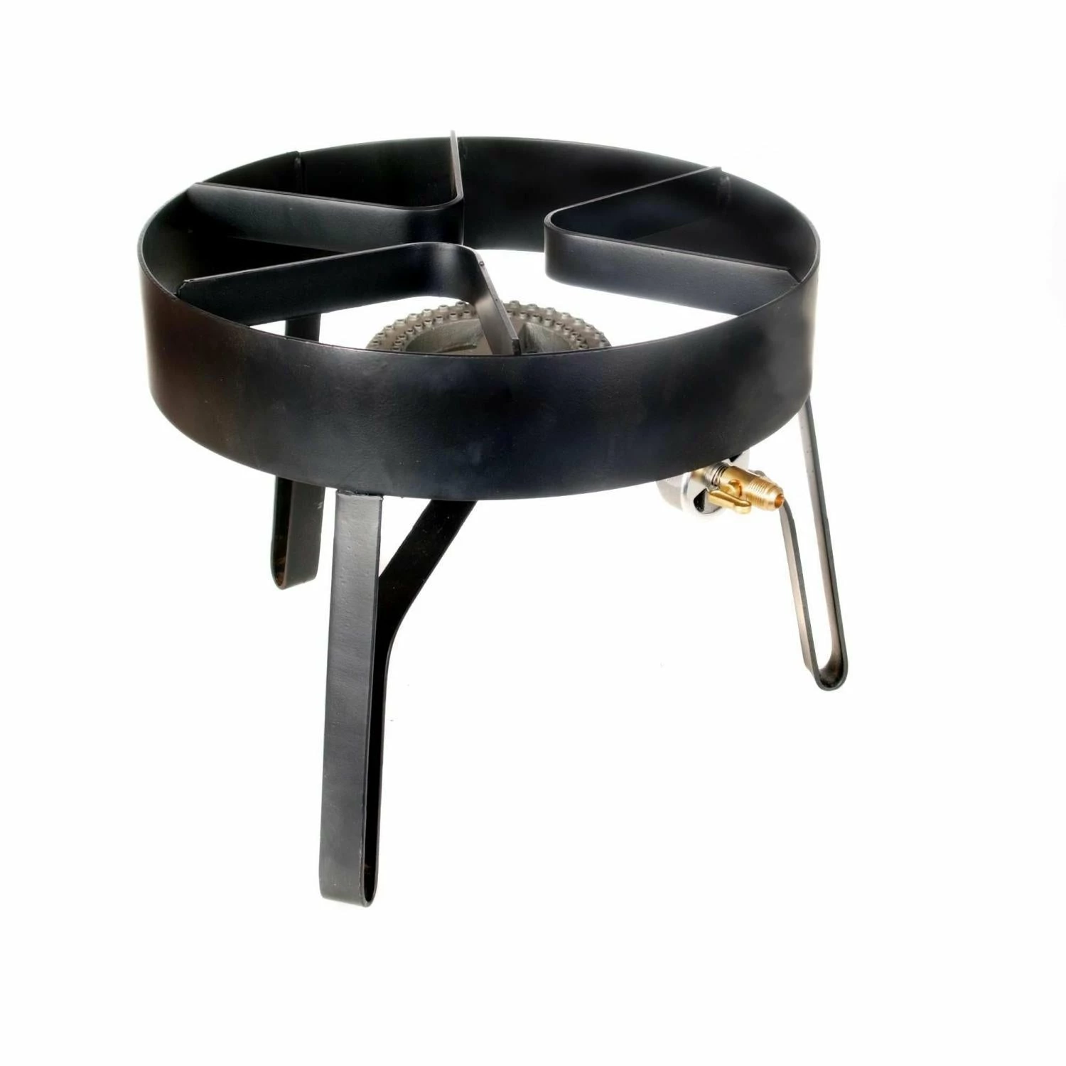 This Cajun Classic burner is a single gas burner on a low stand. The Cajun Classic burner stand measures 11. 5 inches tall x 14. 5 inches wide, and has an output of 35,000 BTUs. Hose and regulator not included with gas burner and for use with Propane gas only!