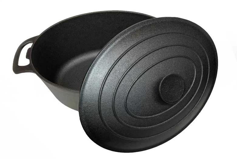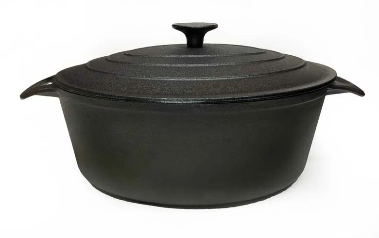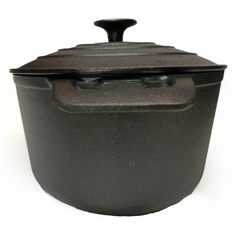This Cajun Classic pot is made of cast iron, holds 6 quarts, and comes with lid. The This Cajun Classic pot is pre-seasoned to perfection and ready for use. Cast iron cookware makes for superior heat retention and even heating of foods. Though nonstick when seasoned, hand wash Cajun Classic cast iron with stiff brush and hot water. Heavy-Duty and durable, cast iron cookware is designed to last for years.