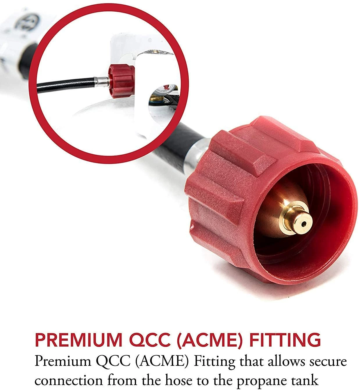 - Universal Fitting that works with most US standard propane Tanks