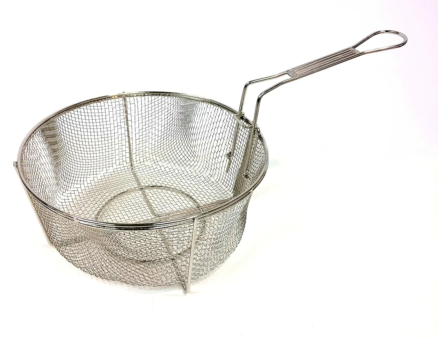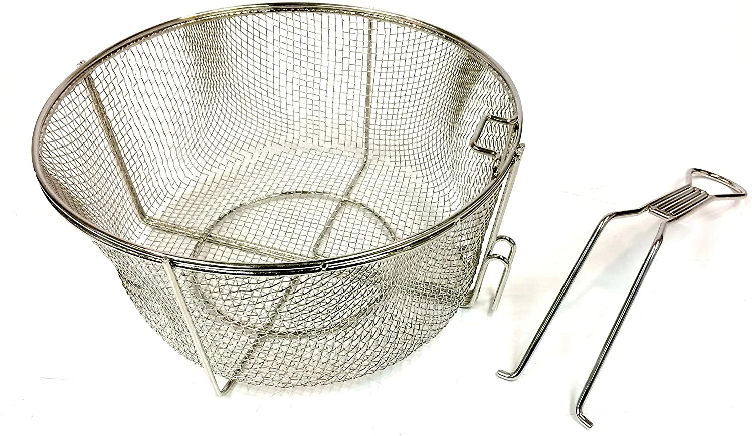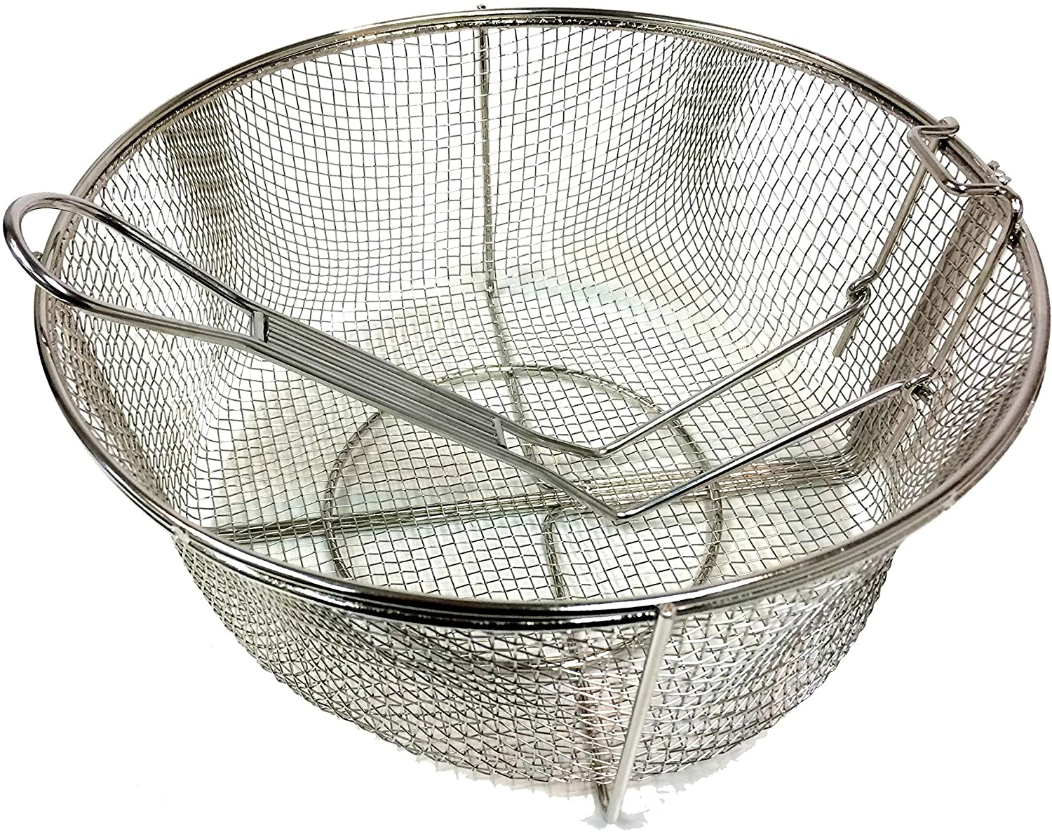 The Bayou Classic Stainless Fry Basket with Folding Handle is made to use as an accessory to several fry pots and dutch ovens. Please be sure to measure your pot prior to purchasing this wire mesh basket. This stainless fry basket is unique due to the location of the hook, which is located on the bottom. Most wire mesh baskets have hooks at the top of the basket. Your food ends up sitting in the grease, and ain’t no one got time for that! The Bayou Classic Stainless Fry Basket sits higher than your grease when trying to drain your food. It measures 11” W x 5” D.