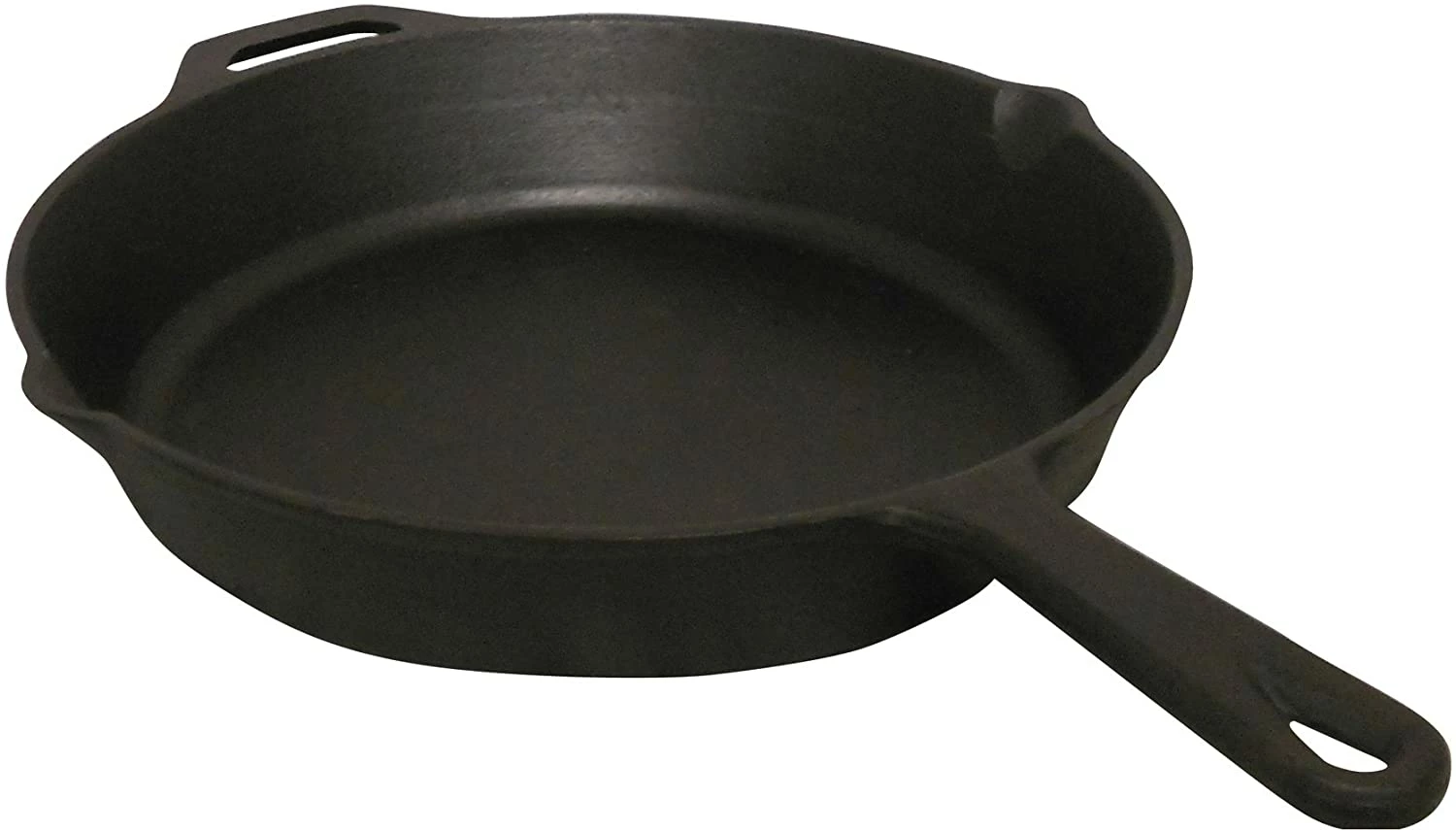 King Kooker cast iron skillets includes hole in handle for hanging and pouring spout sides. Cast iron construction allows for even heat distribution, eliminating cold spots. Excellent for frying. Pre-seasoned and ready to cook.