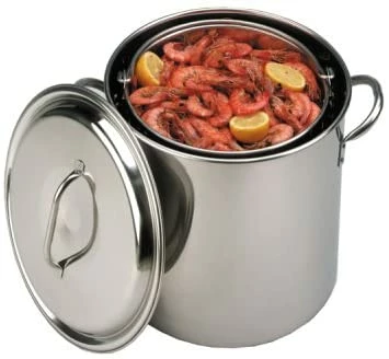 The 22 qt Stainless Steel Boiling Pot is a 22 qt stainless steel stock pot with a stainless steel stock pot basket. The 22 qt Stainless Steel Boiling Pot is the perfect sized stainless steel stock pot kit for those wanting to boil a few lobsters, about 4 lbs of shrimp, or a big ‘ol pot of gumbo.
